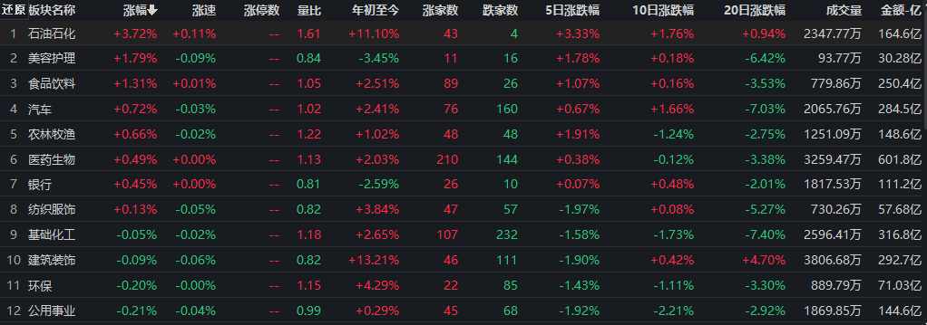 石油石化行業(yè)漲超3%