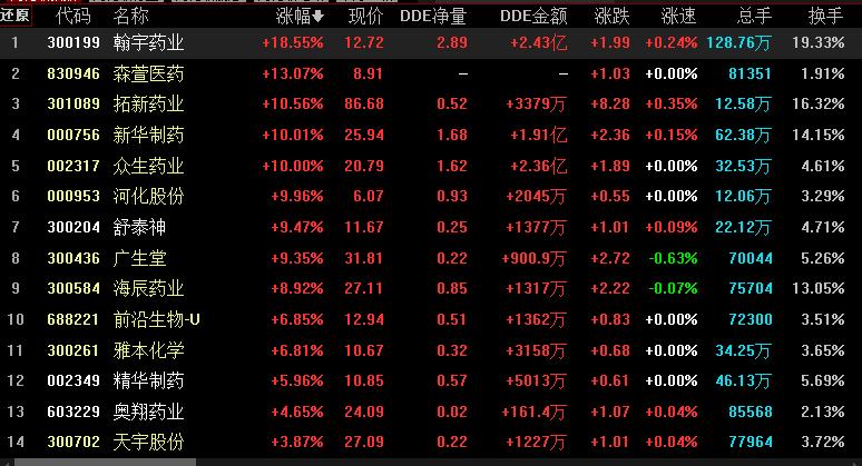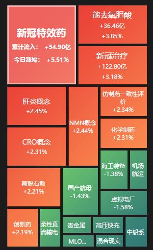 具體看,截至5月23日上午收盤(pán),新冠特效藥板塊漲幅居首達(dá)5.51%,資金凈流入達(dá)54.9億元。其中,翰宇藥業(yè)、森萱醫(yī)藥、拓新藥業(yè)、新華制藥、眾生藥業(yè)等多只醫(yī)藥股漲幅均超10%。