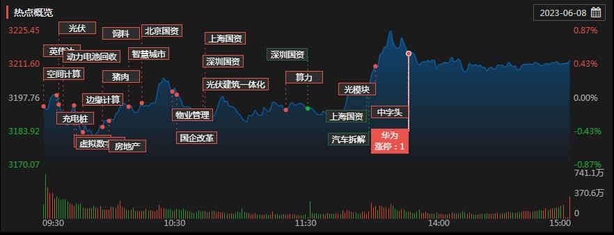 具體熱點(diǎn)方面,今日汽車拆解概念板塊領(lǐng)漲,超越科技、交運(yùn)股份漲停;豬肉板塊企穩(wěn)反彈,新五豐、巨星農(nóng)牧漲停;建筑裝飾股集體走強(qiáng),科新發(fā)展等6只個(gè)股漲停;房地產(chǎn)開(kāi)發(fā)股持續(xù)活躍,大龍地產(chǎn)等4只個(gè)股漲停;午后大金融股、中字頭股異動(dòng),首創(chuàng)證券、弘業(yè)期貨一度漲停,杭州銀行、光大銀行漲超3%。另外,傳媒板塊領(lǐng)跌,教育、互聯(lián)網(wǎng)電商、混合現(xiàn)實(shí)、汽車芯片、液冷服務(wù)器、腦機(jī)接口、半導(dǎo)體及元件等板塊跌幅居前。