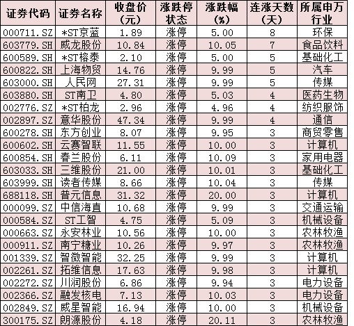 表:連續(xù)上漲3日且今日收盤漲停個股情況: