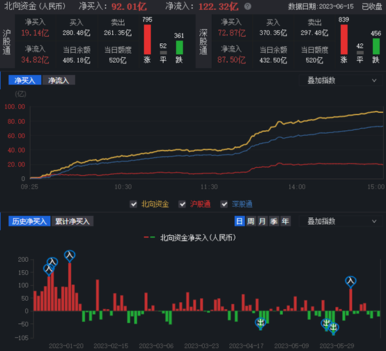 6月15日,A股三大指數(shù)放量上漲,行業(yè)板塊和個股漲多跌少,北向資金凈買入逾92億元。有機(jī)構(gòu)分析人士表示,市場已經(jīng)來到一個高低切換的位置,A股正面臨方向性選擇。