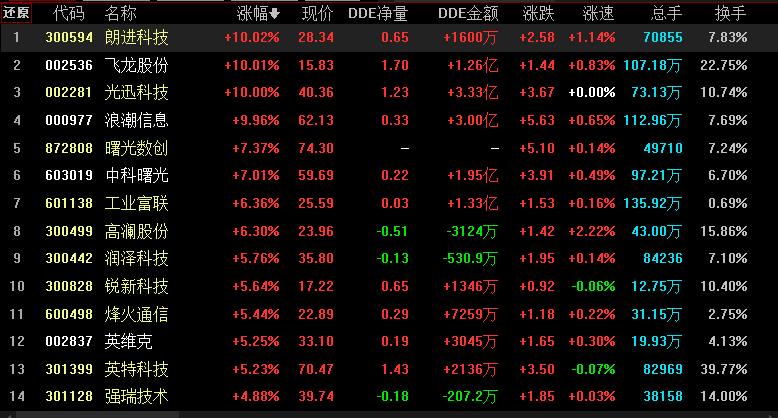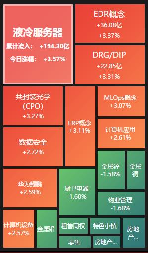 具體看,截至6月19日上午收盤,液冷服務(wù)器板塊漲幅居首,達(dá)3.57%,資金凈流入達(dá)194.30億元。其中,朗進(jìn)科技、飛龍股份、光迅科技等概念股漲幅均超10%。