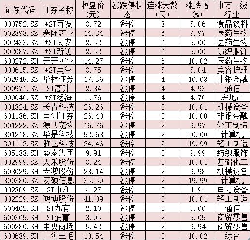 表:連續(xù)上漲2日且今日收盤漲停個股情況