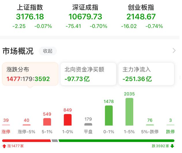 周二(8月15日),A股三大指數午后探底回升,上證指數相對偏強。截至收盤,上證指數跌0.07%報3176.18點,深證成指跌0.70%報10679.73點,創(chuàng)業(yè)板指跌0.74%報2148.67點;兩市合計成交金額達7064.96億元??傮w上看,A股個股跌多漲少。其中,漲停個股達39只,跌停個股達3只。