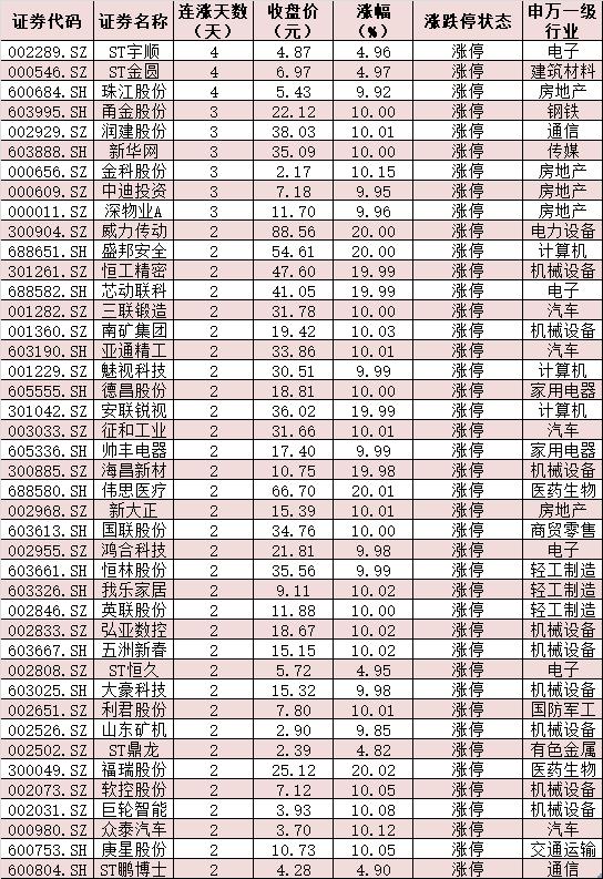 表:連續(xù)上漲2日且今日收盤漲停個(gè)股情況