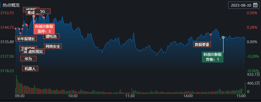 周三(8月30日),A股三大指數(shù)沖高回落,截至收盤,上證指數(shù)漲0.04%,報(bào)3137.14點(diǎn);深證成指漲0.26%,報(bào)10482.50點(diǎn);創(chuàng)業(yè)板指跌0.05%,報(bào)2117.13點(diǎn)。滬深兩市合計(jì)成交額9843.49億元;北向資金凈賣出24.63億元??傮w來看,A股個(gè)股漲多跌少,超3000只個(gè)股實(shí)現(xiàn)上漲,其中有48只個(gè)股以漲停價(jià)報(bào)收。