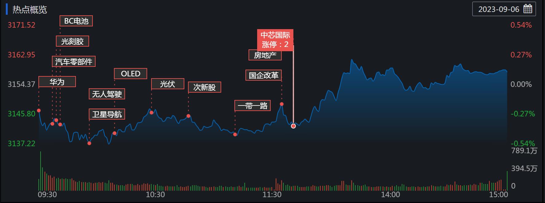 具體熱點(diǎn)看,今日,光刻膠板塊領(lǐng)漲,楊帆新材、廣信材料、藍(lán)英裝備、容大感光等4只個(gè)股20CM漲停,盛劍環(huán)境、張江高科10CM漲停;衛(wèi)星導(dǎo)航板塊全天強(qiáng)勢(shì),震有科技、天邁科技、華力創(chuàng)通、神宇股份等4只個(gè)股20CM漲停,華體科技、深賽格10CM漲停;房地產(chǎn)開(kāi)發(fā)板塊午后快速拉升,中國(guó)武夷、張江高科漲停;另有電子化學(xué)品、汽車(chē)芯片、6G概念、國(guó)防軍工、富士康概念、通信設(shè)備等板塊表現(xiàn)活躍。廚衛(wèi)電器領(lǐng)跌,港口航運(yùn)、機(jī)場(chǎng)航運(yùn)、手機(jī)游戲等板塊跌幅居前。