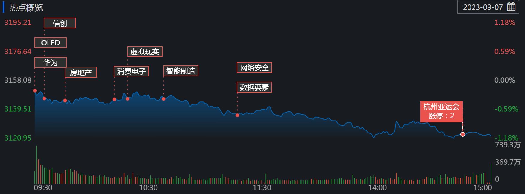 具體熱點(diǎn)看,今日酒店及餐飲板塊逆市領(lǐng)漲,君亭酒店、西安飲食漲超3%;教育板塊沖高回落,國脈科技、東方時尚漲超5%;電子競技開盤沖高后震蕩下行,華立科技20CM漲停;另有景點(diǎn)及旅游、華為鯤鵬、跨境支付板塊上漲。下跌方面國家大基金持股板塊領(lǐng)跌,光刻膠、BC電池、半導(dǎo)體及元件等近期活躍板塊跌幅居前。