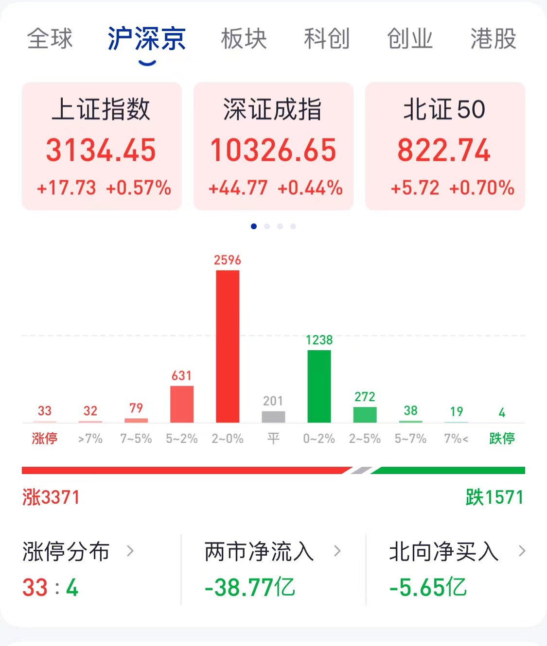 周一(9月11日),三大股指震蕩上行,集體收漲。截至上午收盤,上證指數(shù)漲0.57%,報(bào)3134.45點(diǎn);深證成指和創(chuàng)業(yè)板指漲幅分別為0.44%和0.22%;滬深兩市合計(jì)成交額4898.26億元,總體來(lái)看,兩市個(gè)股漲多跌少,超3000只個(gè)股上漲。