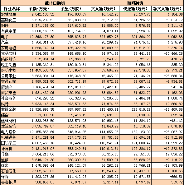 表:9月8日申萬(wàn)一級(jí)行業(yè)兩融交易情況