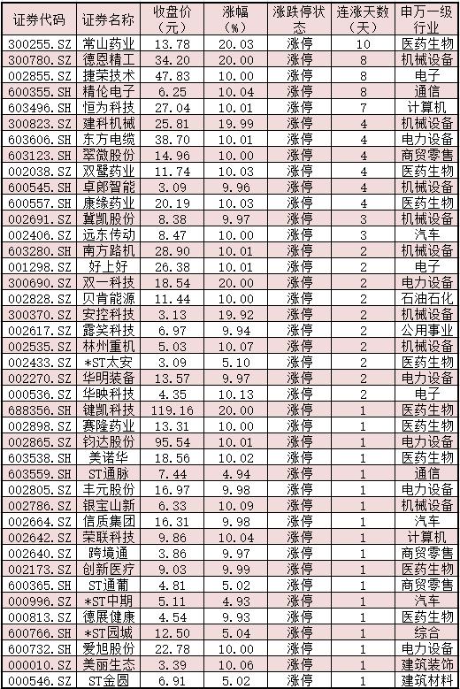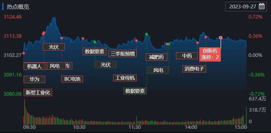 具體來看,醫(yī)藥、新能源賽道表現(xiàn)強(qiáng)勢,其中,CRO(合同研究組織)概念板塊領(lǐng)漲,德展健康漲停;減肥藥概念股持續(xù)走強(qiáng),常山藥業(yè)等3只概念股漲停;創(chuàng)新藥板塊集體走強(qiáng),賽隆藥業(yè)等5只概念股漲停;BC(全背電極接觸晶硅光伏電池)電池概念股全天強(qiáng)勢,鈞達(dá)股份、愛旭股份漲停;機(jī)器人、新型工業(yè)化概念股維持強(qiáng)勢,德恩精工20CM漲停實現(xiàn)3連板,精倫電子6連板;醫(yī)療服務(wù)、高壓氧艙、互聯(lián)網(wǎng)電商、流感、中藥、HJT電池、醫(yī)美概念等板塊表現(xiàn)活躍。