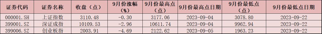 表:三大指數(shù)9月份市場表現(xiàn)一覽