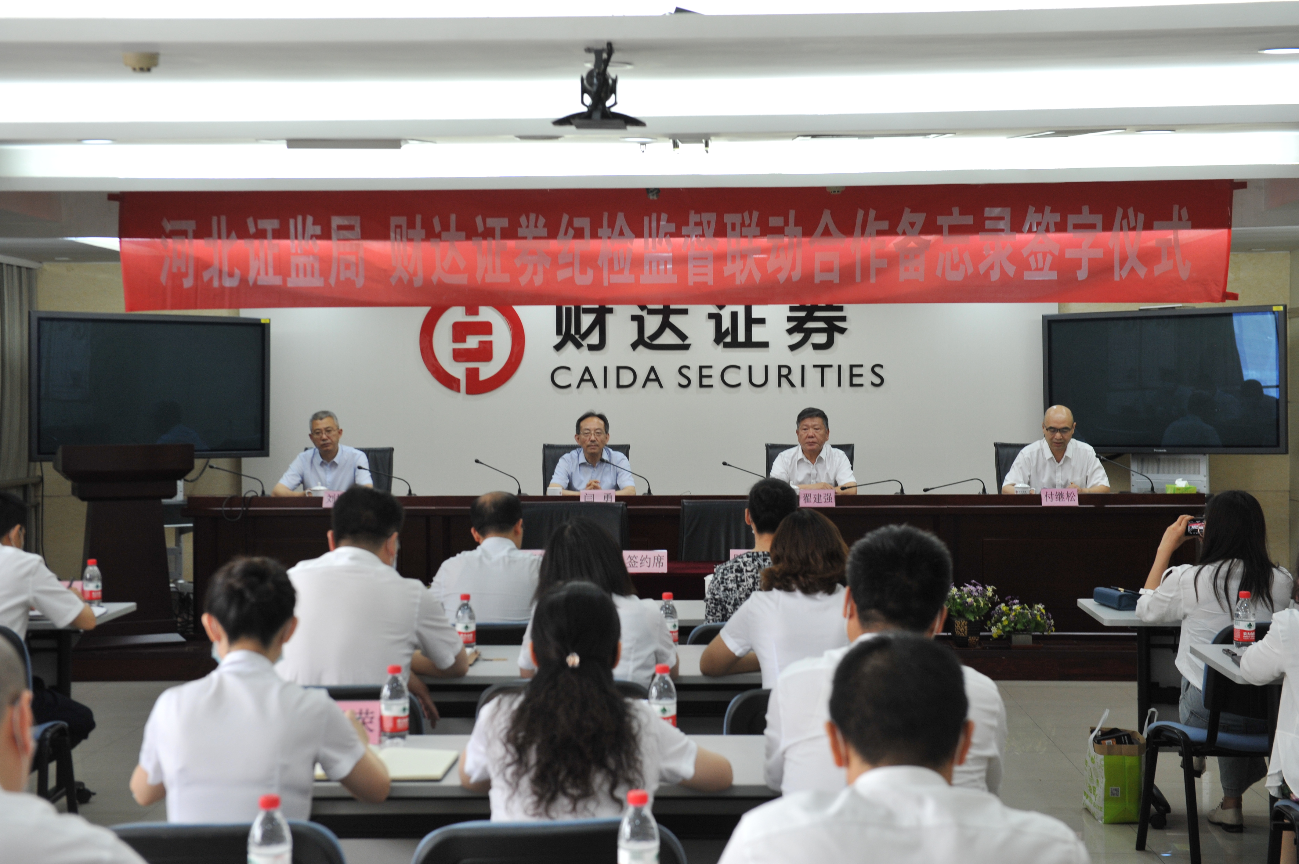 財(cái)達(dá)證券董事長翟建強(qiáng)表示,財(cái)達(dá)證券和河北證監(jiān)局監(jiān)督聯(lián)動(dòng)合作備忘錄的簽署,是公司發(fā)展史上的一件大事,是形成監(jiān)督合力的重要保障,也必將促使公司的監(jiān)督工作滲透到經(jīng)營管理的每一個(gè)環(huán)節(jié),實(shí)現(xiàn)監(jiān)督工作的全方位、全過程、全覆蓋。