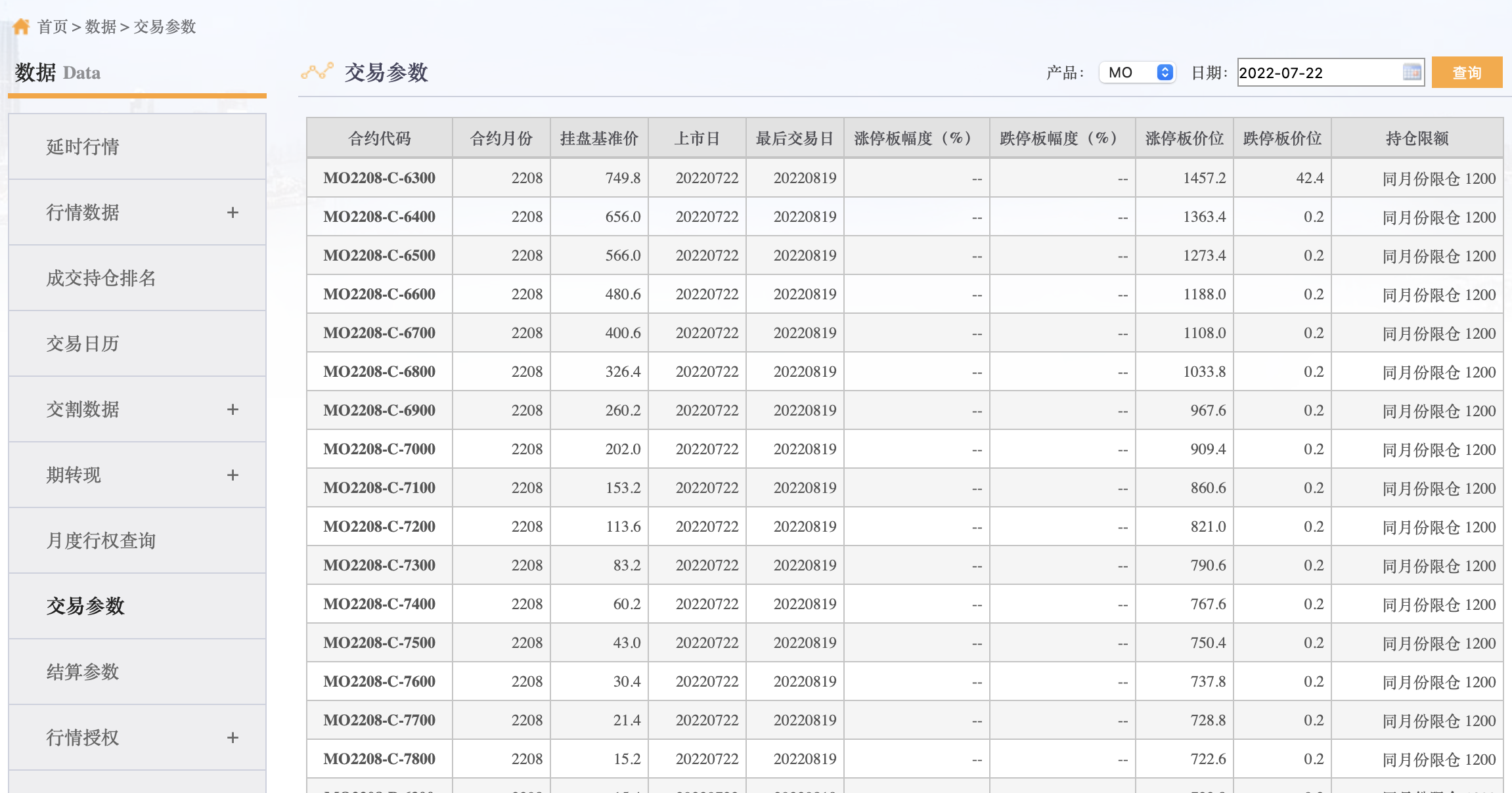 中證1000股指期權(quán)MO2208月份合約、MO2209月份合約、MO2212月份合約、MO2303月份合約、MO2306月份合約同日上市交易,中證1000股指期權(quán)合約的掛盤基準價,可通過中金所網(wǎng)站“數(shù)據(jù)”欄目查詢。
