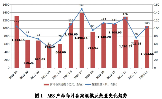 2月22日,中基協(xié)發(fā)布2023年1月份《企業(yè)資產(chǎn)證券化業(yè)務(wù)備案運(yùn)行情況簡(jiǎn)報(bào)》顯示,2023年1月份,企業(yè)資產(chǎn)證券化產(chǎn)品共備案確認(rèn)103只,新增備案規(guī)模合計(jì)1063.66億元。1月份新增備案規(guī)模環(huán)比增長(zhǎng)49.41%,同比減少19.00%。