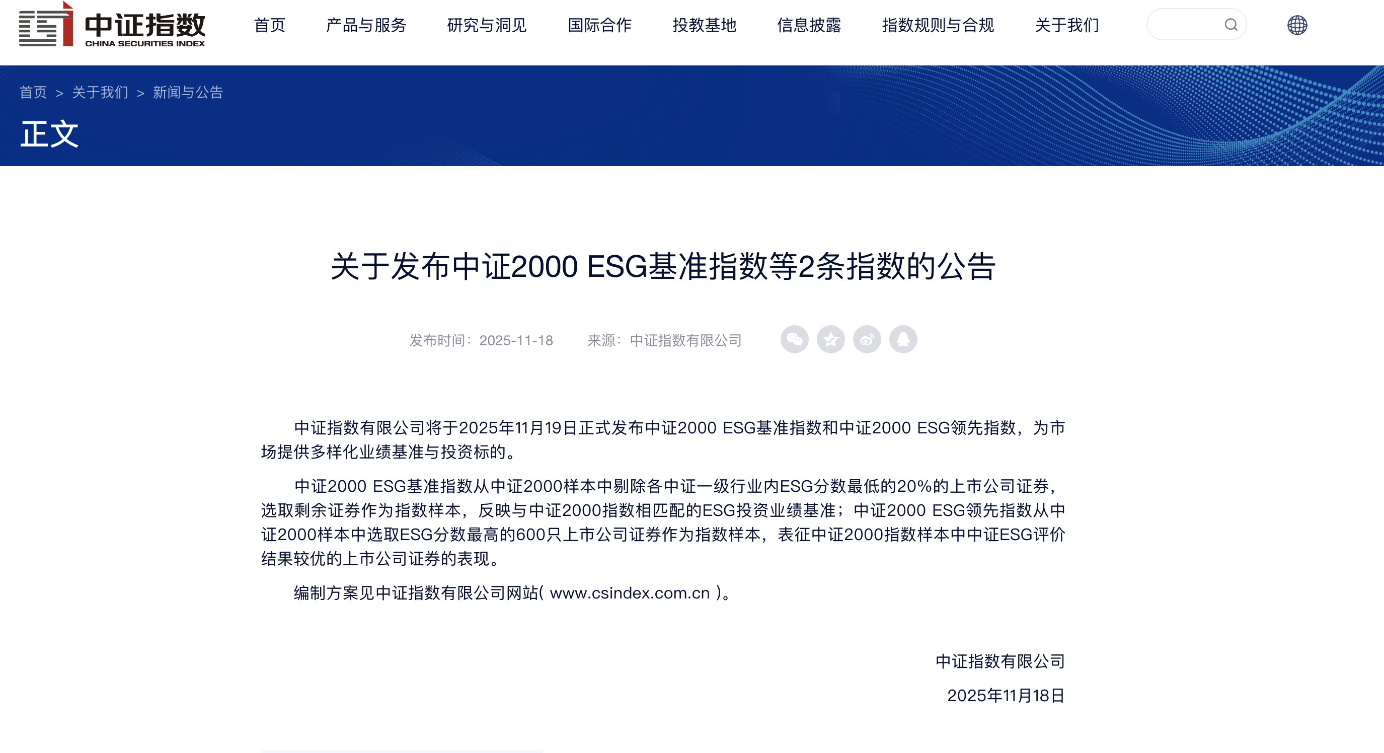 本報(bào)訊 (記者毛藝融)11月18日,中證指數(shù)有限公司官網(wǎng)公告稱,將于2025年11月19日正式發(fā)布中證2000ESG基準(zhǔn)指數(shù)和中證2000ESG領(lǐng)先指數(shù),為市場(chǎng)提供多樣化業(yè)績(jī)基準(zhǔn)與投資標(biāo)的。