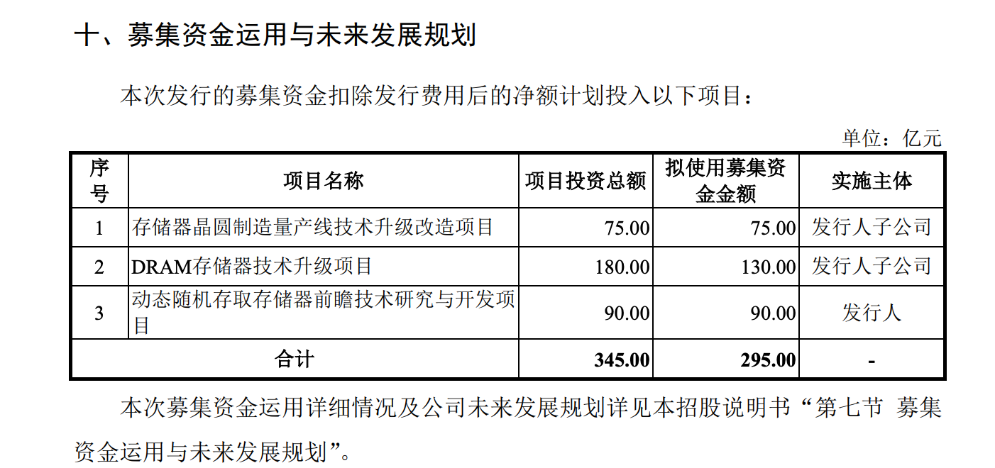 招股書申報稿顯示,長鑫科技擬募集資金總額為295億元,將用于“存儲器晶圓制造量產線技術升級改造項目”“DRAM存儲器技術升級項目”“動態(tài)隨機存取存儲器前瞻技術研究與開發(fā)項目”等。
