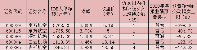 表:3月9日實(shí)現(xiàn)大單資金凈流入的航空股一覽