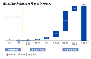以一只售價3500元的玻尿酸為例,根據(jù)國元證券的數(shù)據(jù),原料成本其實只有8元左右,而上游原料+成品,含銷售成本及利潤共約400元。消費者交給醫(yī)美機構(gòu)的3500元里,除去400元成本,有2000元都是機構(gòu)為了獲客而付出的投放、營銷成本。