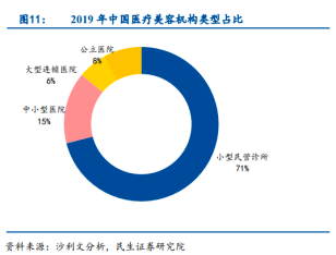 朗姿股份以女裝品牌起家,后通過投資醫(yī)美機構(gòu)切入醫(yī)美賽道,截至2020年第三季度,已擁有18家醫(yī)療美容機構(gòu)。不過,在國內(nèi)醫(yī)美市場,中端醫(yī)美機構(gòu)極為分散,除少數(shù)公立醫(yī)院以外,小型診所仍是醫(yī)美機構(gòu)的大頭,占到市場71%,大型連鎖所占市場份額總量不到6%。朗姿作為醫(yī)美機構(gòu)龍頭雛形初現(xiàn),但目前市場份額依然相當有限。