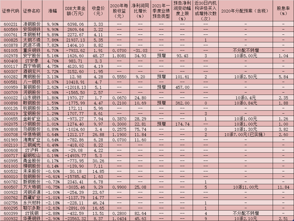 對于鋼鐵板塊的市場表現(xiàn),接受《證券日報》記者采訪的私募排排網(wǎng)研究員朱圣表示,“鋼鐵板塊的走強(qiáng),一方面是因?yàn)樘贾泻土Χ瓤涨?,鋼鐵作為碳排放量最大的制造業(yè),肯定會受到重點(diǎn)關(guān)注,行業(yè)改革勢在必行,因此鋼鐵盈利改善是一個長期趨勢;另一方面,鋼鐵限產(chǎn)和經(jīng)濟(jì)復(fù)蘇帶來的鋼價上漲預(yù)期,供需失衡的局面讓鋼鐵價格有望繼續(xù)維持。還有就是鋼鐵股的高分紅和低估值使得鋼鐵股具有較高的防御價值。”