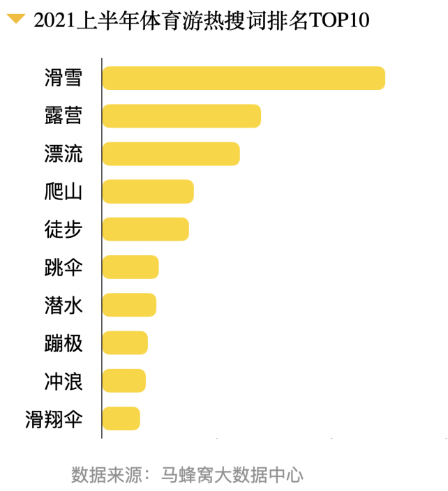 報(bào)告顯示,國(guó)內(nèi)滑雪運(yùn)動(dòng)熱度牢牢占據(jù)著馬蜂窩搜索熱度榜首。而疫情之后人們對(duì)健康生活方式的重視,也使得露營(yíng)、漂流、爬山、徒步等既鍛煉身體又貼近自然的項(xiàng)目收獲了越來(lái)越多的關(guān)注與青睞。