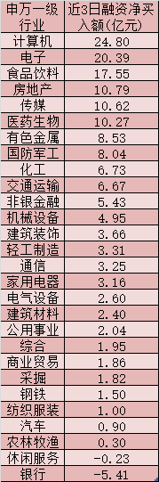 表2:節(jié)后申萬一級行業(yè)融資凈買入一覽
