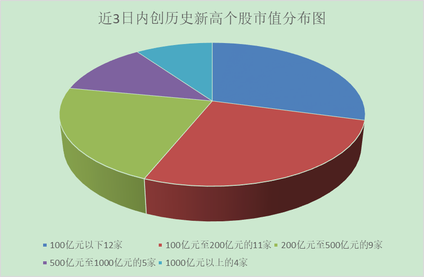 首先,以中小流通市值股為主。數(shù)據(jù)顯示,近3日內(nèi)股價(jià)創(chuàng)歷史新高的公司流通市值在100億元以下的有12家,流通市值在100億元至200億元的有11家,流通市值在200億元至500億元的有9家,流通市值在500億元至1000億元的有5家,流通市值在1000億元以上的有4家。從占比來看,200億元以下市值個(gè)股占比達(dá)到56.10%,1000億元以上市值個(gè)股占比0.98%。市值低于100億元的個(gè)股分別為:元隆雅圖、格爾軟件、春風(fēng)動(dòng)力、淳中科技、萬集科技、佳發(fā)教育、珀萊雅、荃銀高科、誠邁科技、中新賽克、億聯(lián)網(wǎng)絡(luò)、捷佳偉創(chuàng)。