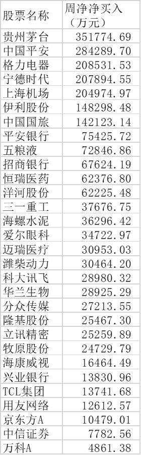 既然看好,那么北上資金春節(jié)后都買了些什么?滬深股通十大交易活躍股數(shù)據(jù)顯示,在本周北上資金呈凈買入的活躍股有30只,凈買入額最高的公司是貴州茅臺,周凈買入額達(dá)35.18億元,其次是中國平安,周凈買入額達(dá)28.43億元,格力電器、寧德時代、上海機(jī)場、伊利股份、中國國旅緊隨其后,周凈買入額均在10億元之上。上述7只個股北上資金周凈買入額合計達(dá)154.79億元。