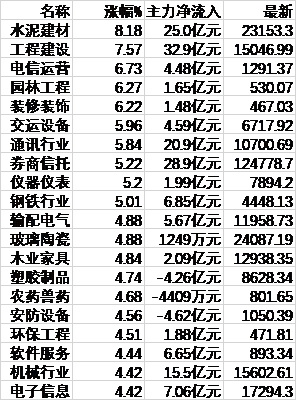 盤面顯示,61類行業(yè)板塊全線上漲,水泥建材(8.18%)、工程建設(shè)(7.57%)、電信運(yùn)營(6.73%)等板塊居前3位。個(gè)股方面,呈現(xiàn)普漲格局,有3647只個(gè)股上漲,占當(dāng)日交易個(gè)股的96.43%,剔除首日上市新股N建業(yè)后,有多達(dá)200只非ST類個(gè)股封漲停板報(bào)收。