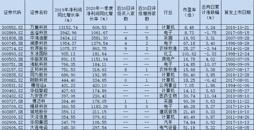 綜合來(lái)看,金溢科技、中海油服、聞泰科技等3家公司年報(bào)、一季報(bào)凈利潤(rùn)均實(shí)現(xiàn)同比增長(zhǎng)10倍以上,可謂是處于金字塔尖上的公司。