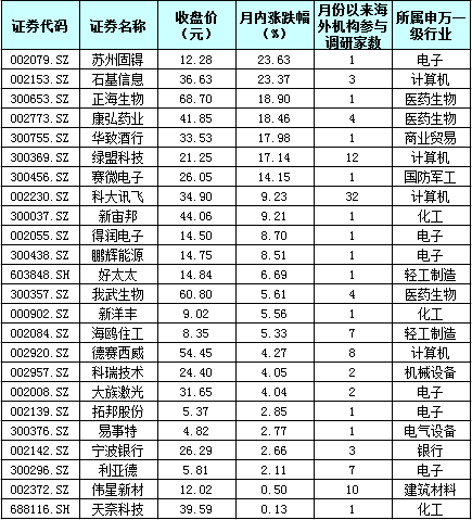 表:月內(nèi)實(shí)現(xiàn)上漲的外資調(diào)研股一覽
