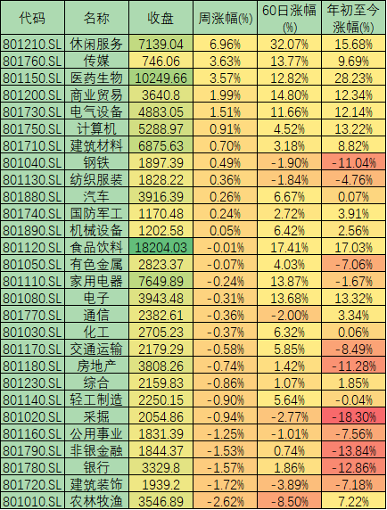 表:本周申萬(wàn)一級(jí)行業(yè)市場(chǎng)表現(xiàn)一覽