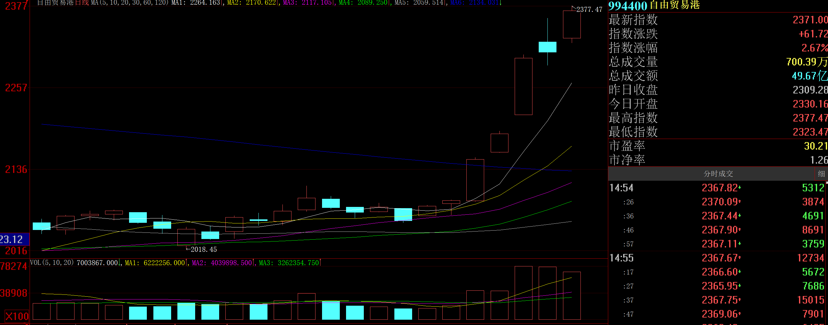 圖為:自由貿(mào)易港板塊日K線圖