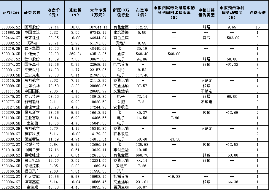 表:周三逆市上漲且大單資金凈流入超億元的31只個(gè)股