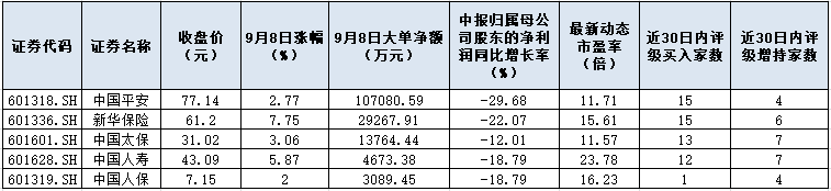 表:機(jī)構(gòu)高頻推薦的保險(xiǎn)股一覽