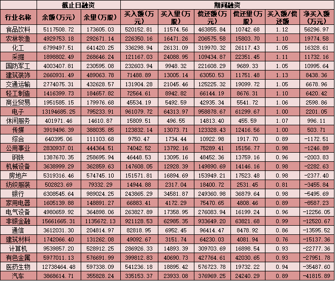 六、截至12月4日申萬(wàn)一級(jí)行業(yè)兩融交易情況