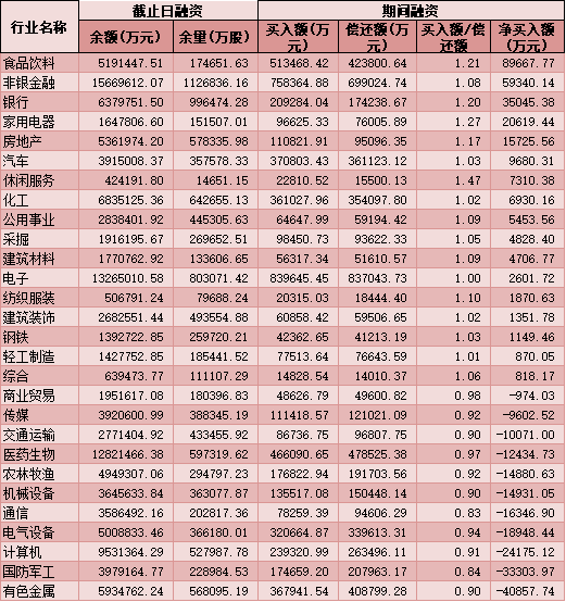 六、截至12月8日申萬(wàn)一級(jí)行業(yè)兩融交易情況