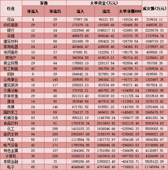 二、周五(12月11日)申萬一級(jí)行業(yè)大單資金流向