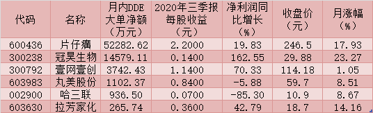 表:月內(nèi)實(shí)現(xiàn)大單凈流入的化妝品概念股
