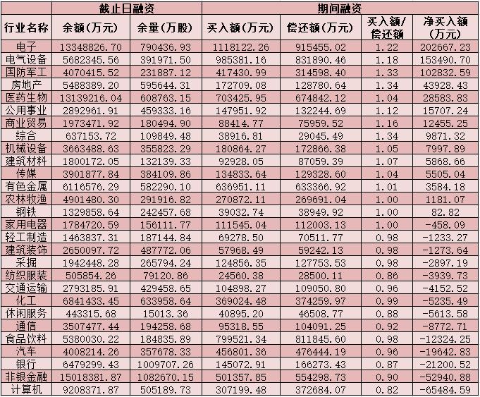 五、截至12月23日申萬級一級行業(yè)兩融交易情況