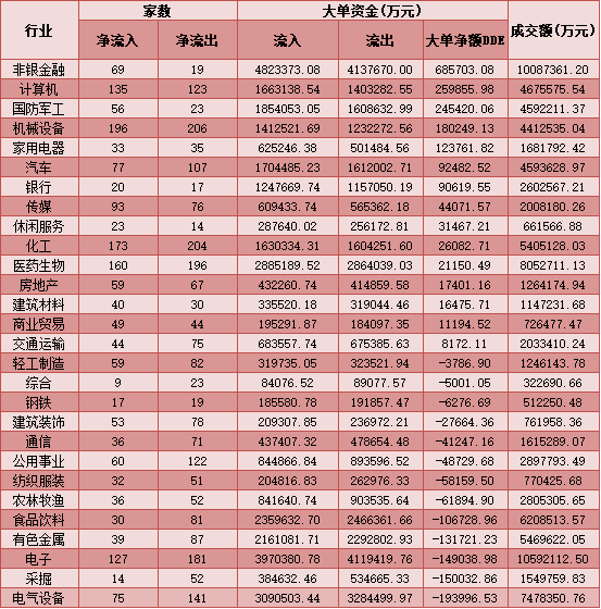 二、周四(12月31日)申萬(wàn)一級(jí)行業(yè)大單資金流向