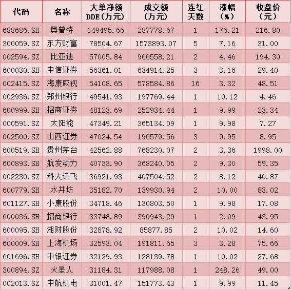 一、周四(12月31日)DDE大單資金凈買(mǎi)入TOP20