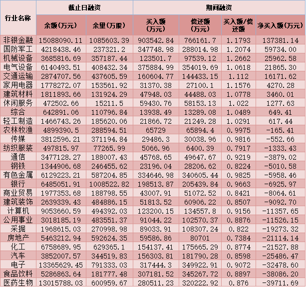 六、截至12月30日申萬(wàn)一級(jí)行業(yè)兩融交易情況