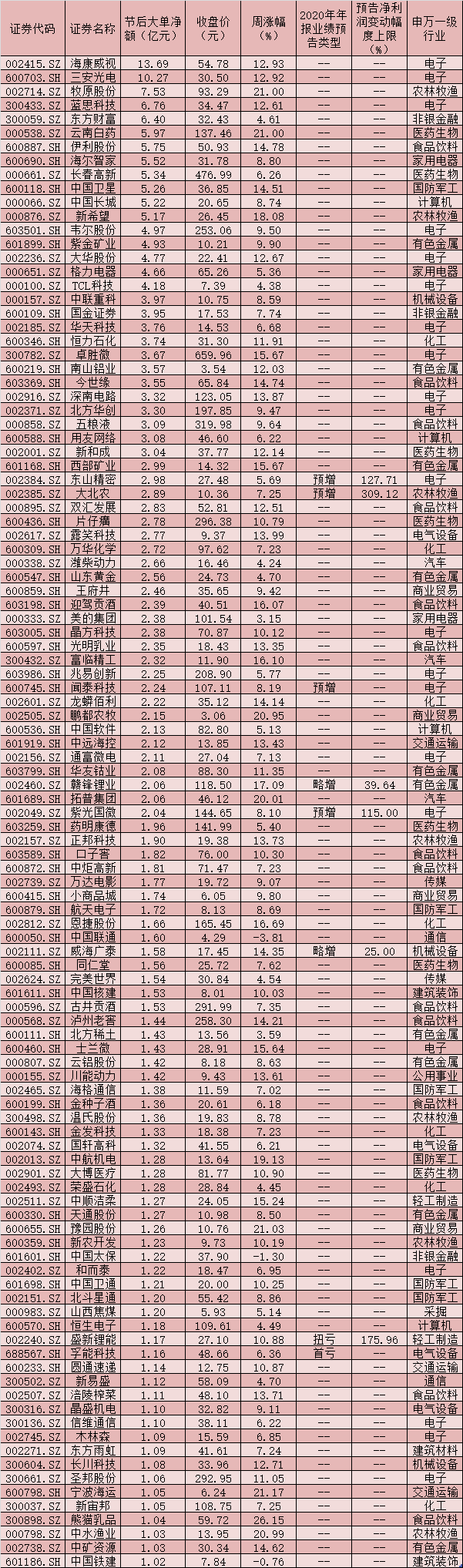表:節(jié)后的2個(gè)交易日實(shí)現(xiàn)大單資金凈流入超1億元的個(gè)股