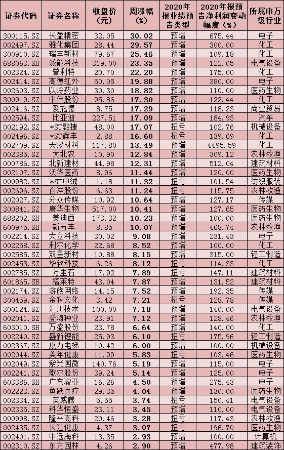 統(tǒng)計發(fā)現(xiàn),今年以來的首周交易中,上述150只業(yè)績有望翻番的個股,有46只個股跑贏同期上證指數(shù)(累計周漲幅2.79%),占比30.7%。其中,長盈精密、雅化集團、瑞豐新材、派能科技、普利特等個股,累計周漲幅均超20%,盡顯強勢。