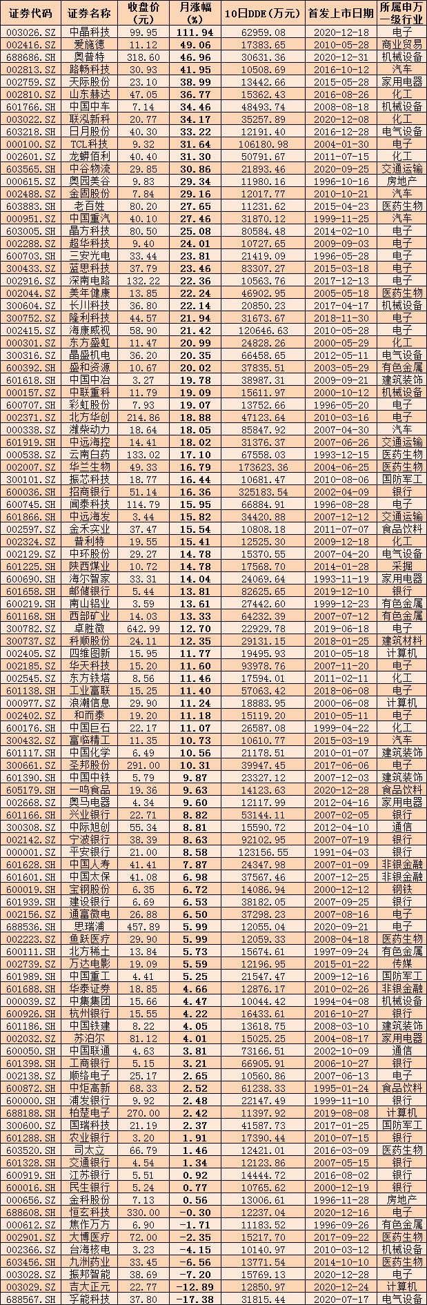 資金的熱捧無疑對股價起到了推動作用。統(tǒng)計發(fā)現(xiàn),上述103只凈流入超1億元的個股中,今年以來,有84只個股跑贏同期上證指數(shù)2.69%的漲幅,占比逾八成。其中,中晶科技、愛施德、奧普特、路暢科技等個股期間累計漲幅均超40%,盡顯強勢。
