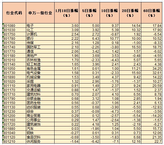 表:申萬一級(jí)行業(yè)指數(shù)近期漲幅一覽