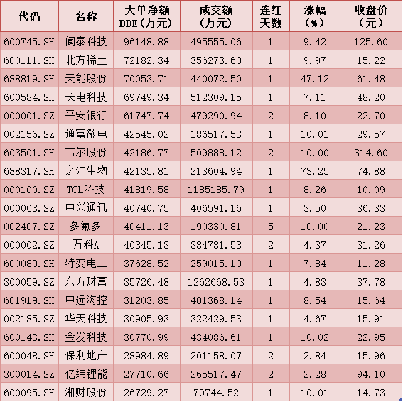 一、周一(1月18日)DDE大單資金凈買(mǎi)入TOP20