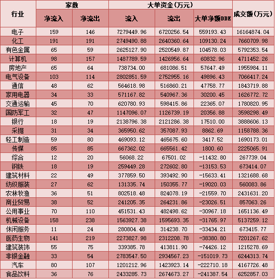 二、周一(1月18日)申萬(wàn)一級(jí)行業(yè)大單資金流向